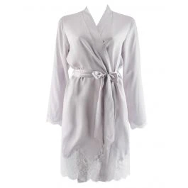 Der Kimono ist an den Ärmelenden und am unteren Saum mit Spitze besetzt. Er wird gewickelt getragen und hat einen Bindegürtel aus Seide. Der Seiden-Kimono ist ca. 100 cm lang und hat lange Ärmel. Unten hat er einen ca. 15 cm breiten Spitzensaum aus inkrustierter Spitze. Diese edle Seidenwäsche ist die perfekte Ergänzung zu den separat erhältlichen Nachthemden aus der gleichen Serie und in den folgenden Farben erhältlich:
