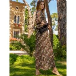 Ein langes Kleid der Luxusklasse ist das Seidenkleid Ophelie der französischen Edel-Marke Marjolaine. Die edle Seide als halbtransparenter Seidenmousseline wurde zu einer verführerischen Seidenwäsche verarbeitet.