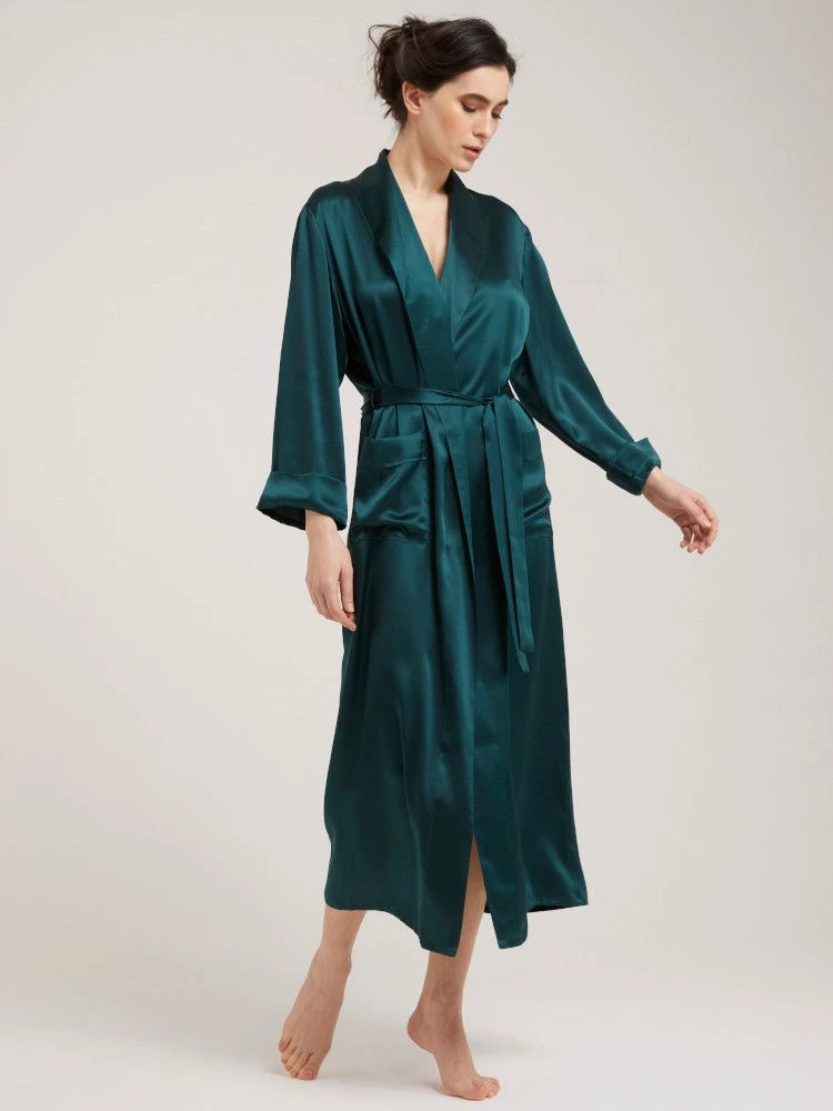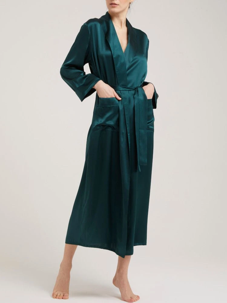 Seidensatin Morgenmantel lang Gigliola einfarbig von Vivis
