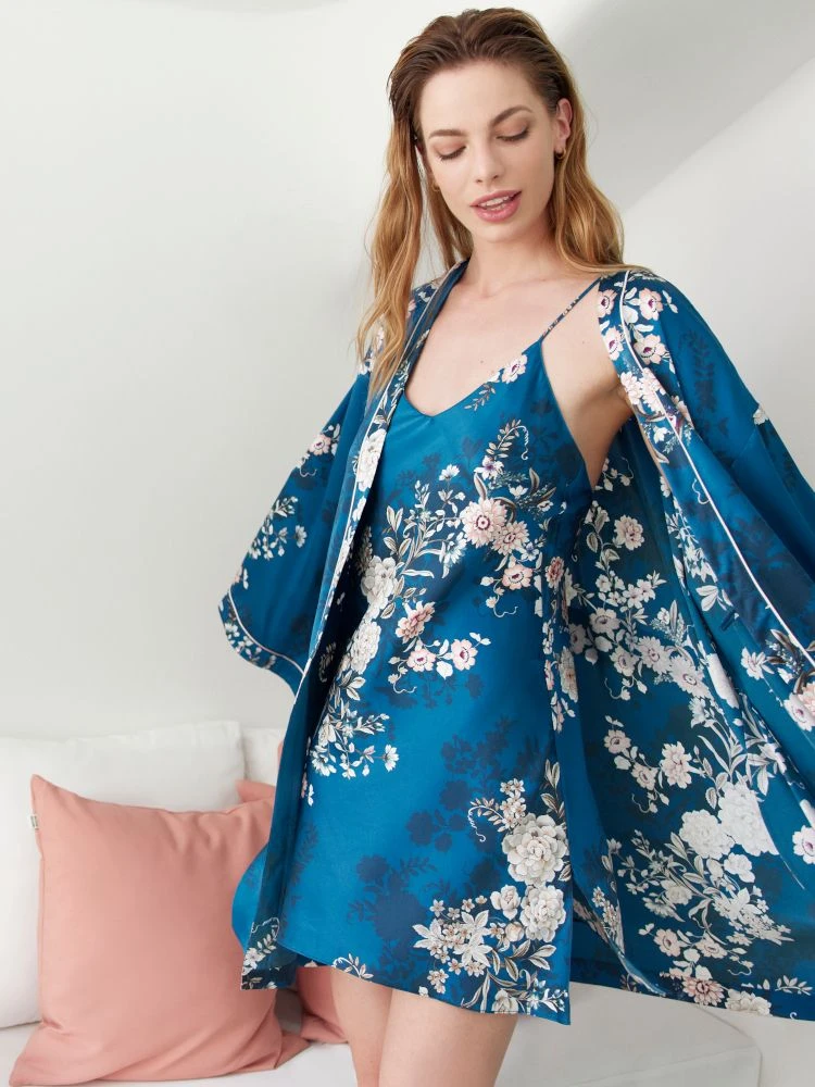 100% Seide Nachthemd Oriental Flowers von Luna di Seta