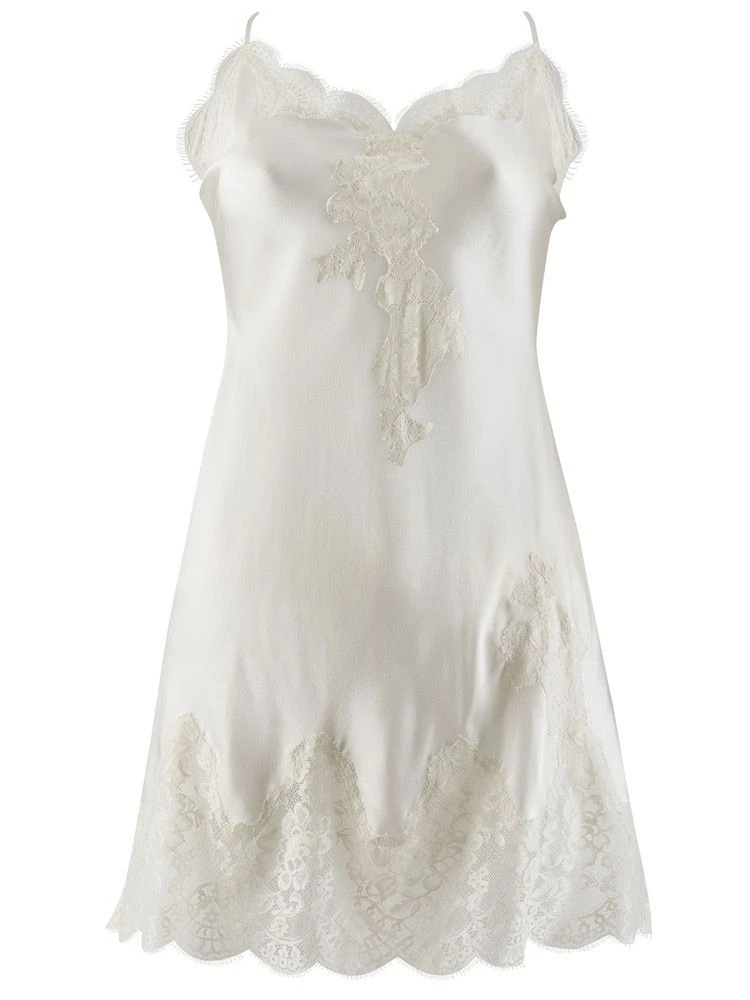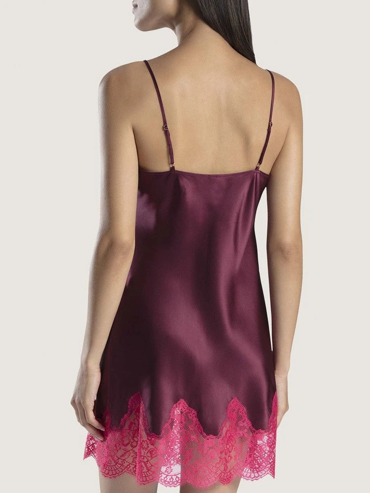 Das kurze Seiden-Negligé Soie d´Amour von Aubade ist eine luxuriöse Nachtwäsche in verführerischen Farben. Das edle Nachthemd besteht aus glänzendem Seidensatin (100% Seide) und exquisiter Blüten-Spitze.