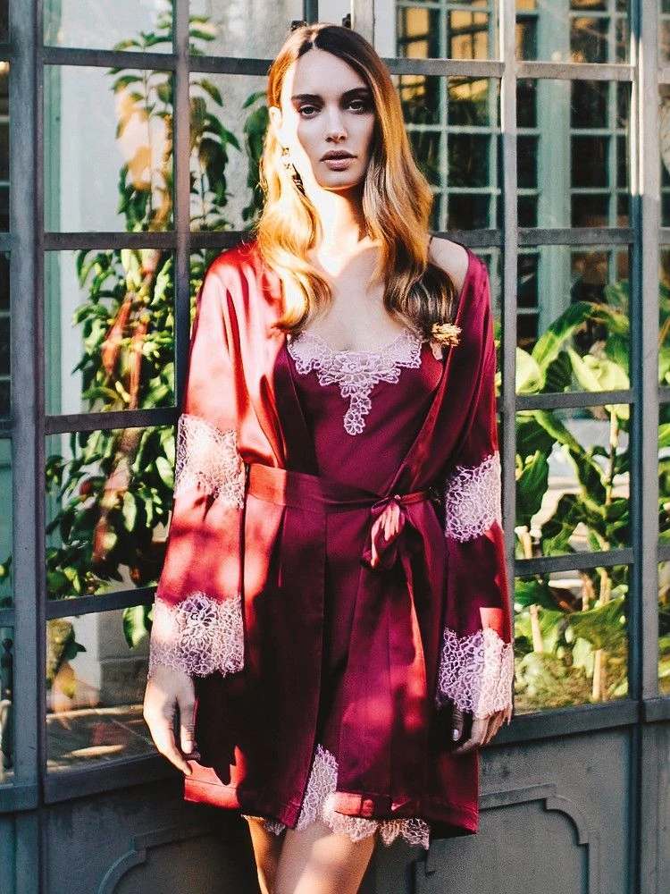 100% Seide Negligee Iconic Lace von Luna di Seta