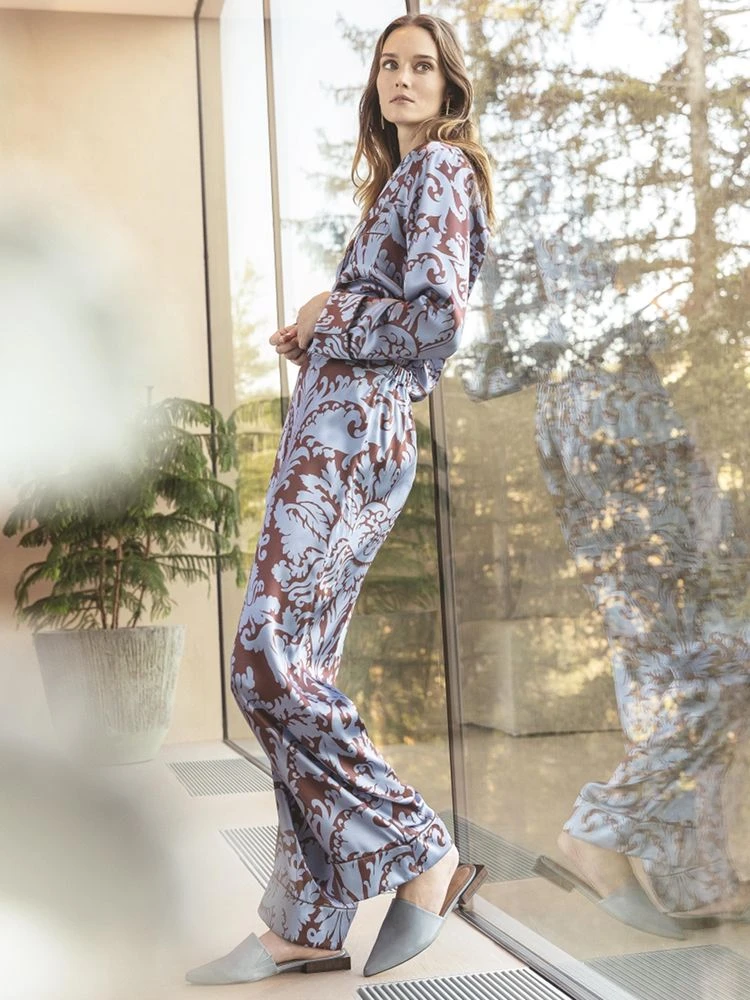 Seiden-Schlafanzug Damask Lavender von Luna di Seta