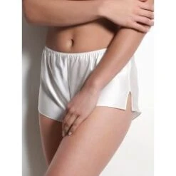 Diese edlen Seiden-Shorts sind eine perfekte Ergänzung zu den Seidentops oder der Seiden-Nachtwäsche von Luna di Seta. Die Shorts bestehen aus Seidensatin aus reiner Seide und haben eine seitliche Höhe von ca. 22 cm. Der Bund ist mit einem eleganten Gummizug verarbeitet und alle Säume sind fein versäumt. Seitliche kleine Schlitze geben dieser Seidenwäsche eine luftig verspielte Note.