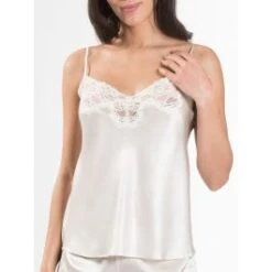Das Seidentop Crépuscule Satiné von Aubade ist eine luxuriöse Oberbekleidung in sommerlichem Naturweiß. Das edle Top besteht aus glänzendem Seidensatin (100% Seide) und exquisiter Blüten-Spitze.