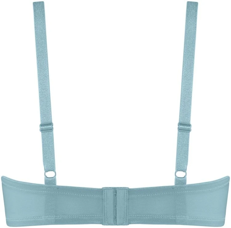 Der BH hat ausgeformte, gefütterte Halb Schalen-Cups. Die Schalen mit Bügel sind auf der Außenseite hellblau-silbern glitzernd und innen hellblau abgefüttert. Die Seitenteile des BHs bestehen aus elastischem Jersey und auf der Rückseite wird der BH mit einem doppelten Häkchenverschluss (dreifach verstellbar) geschlossen. Die Träger sind breiter geschnitten, elastisch und in der Länge verstellbar und über den Cups hat der BH die für die Marke typischen Bändchen.