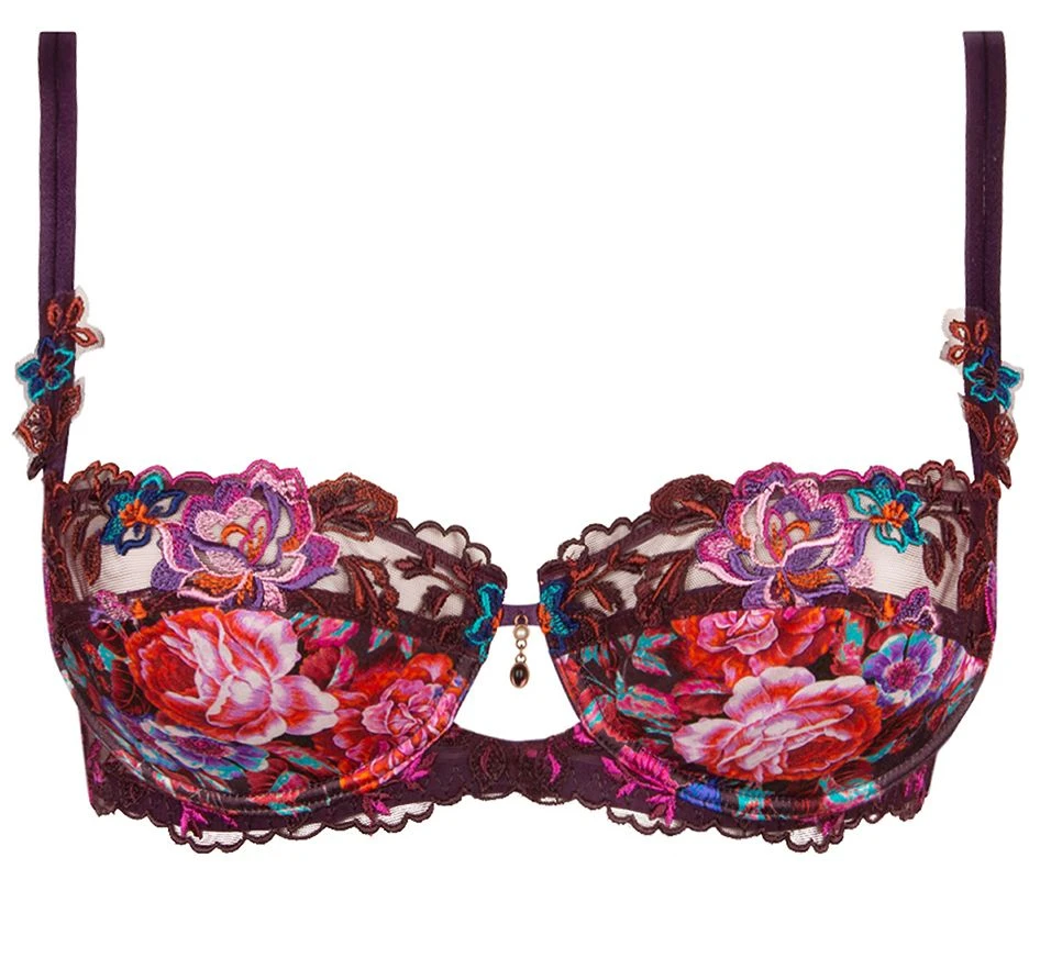 Der luxuriöse Bügel BH Aveu En Fleurs aus bedruckter Seide ist hochwertige Unterwäsche von Lise Charmel aus Frankreich. Die AVEU EN FLEURS Kollektion ist eine edle Herbstkollektion von der französischen Luxus-Marke. Die zarte Kollektion ist an der Schönheit der Natur orientiert. So werden die edlen Dessous-Teile von bunten Blumen und Stickereien geziert. Die bedruckte Seide unterstreicht die Feinheit dieser Linie und macht die Stücke zu unwiederstehlichen Must-Haves. Transparenter Tüll an den Dessous-Stücken enthüllt die Haut auf sinnliche Weise und hebt die femininen Stärken gekonnt hervor.