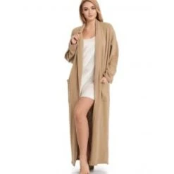 Dieser lange Morgenmantel ist eine wunderbare Lounge-Wear in der kalten Jahreszeit oder die perfekte Ergänzung zu Nachtwäsche, für alle die leicht frieren. Die Länge ist ca. 120 cm.