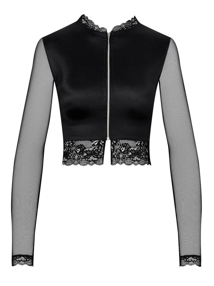 Langarm Minitop Diamant aus Satin schwarz von Cadolle