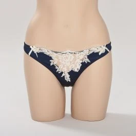 Der Seiden-String Debby von Exilia ist Seidenwäsche der Luxus- Klasse. Der String besteht aus feiner goldener oder nachtblauer Stretch – Seide ( 90% Seide, 10% Elasthan) und einer exquisiten creme-farbenen Spitze. Die hochwertige, weiche Spitze wurde in einem besonders aufwendigen Verfahren als „inkrustierte“ Spitze in die Seide des Vorderteiles eingearbeitet. Der Rest dieses knappen Slips ist komplett aus der elastischen Stretchseide gearbeitet.