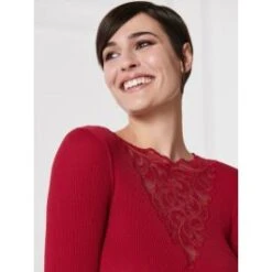 Das Langarm Top Wolle-Seide besteht aus einem besonders hochwertigen gerippten Jersey aus 70% extrafeiner, tasmanischer Merinowolle und 30% Seide in Kombination mit einer luxuriösen, bestickten Spitze. Dieses edle Shirt hat lange Ärmel und eine Gesamtlänge von ca. 62 cm. Das Decolleté ist mit Tüll-Spitze gestaltet.