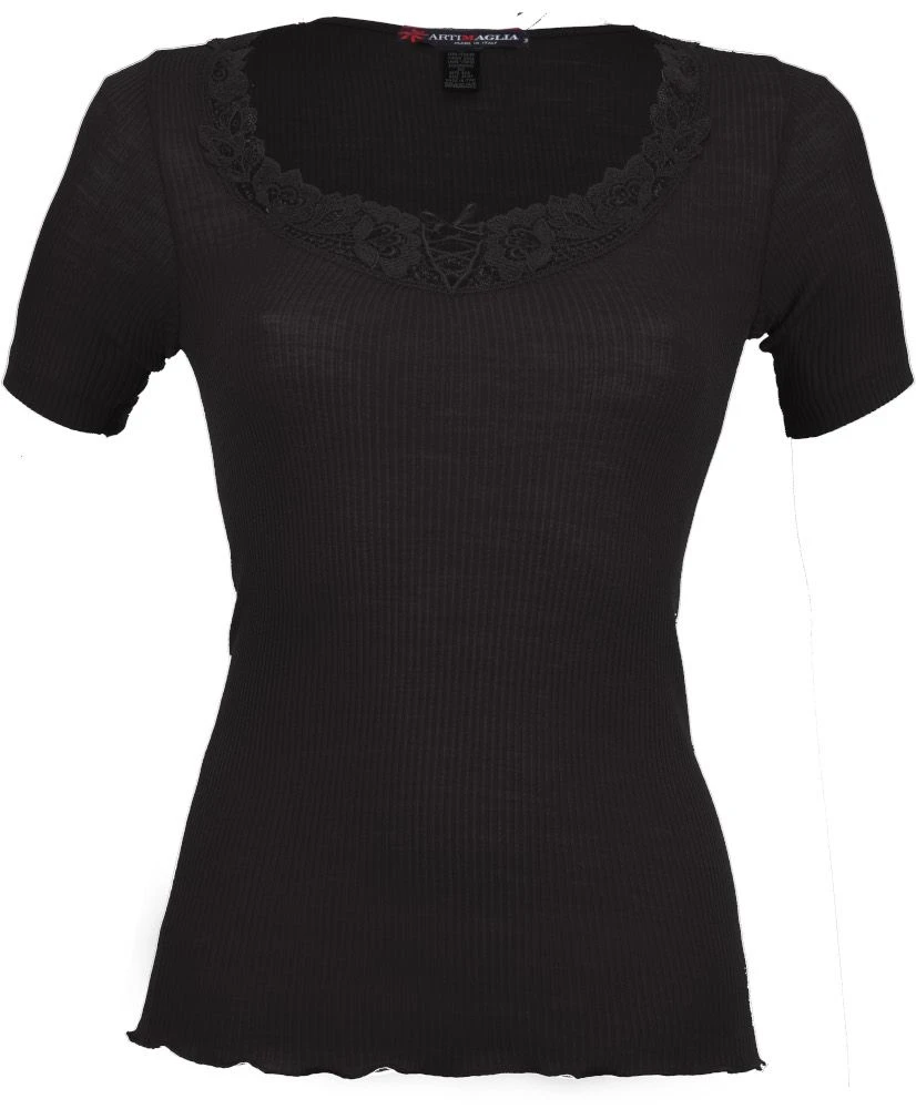 Merinowolle-Seide Kurzarm-Shirt schwarz oder beige von Artimaglia