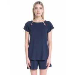 Dieser feine Pyjama ist für den Sommer gedacht und bei uns in dunkelblau erhältlich.