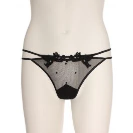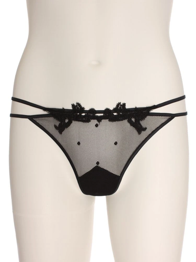 Der Tüll Ouvert String Pepper aus der limitierten RC Private Collection „Black Mirror“ von RCrescentini besteht aus elastischer, schwarzer Spitze und gepunktetem Tüll. Das transparente Tüllmaterial ist kombiniert mit elastischen Bändern aus schwarzem Satin.