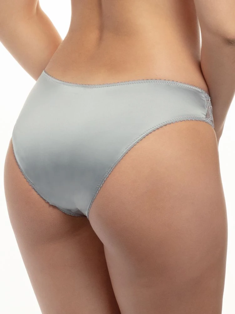 Der Slip hat einen Innenzwickel aus Baumwolljersey. Er ist hinten aus Satin gefertigt.