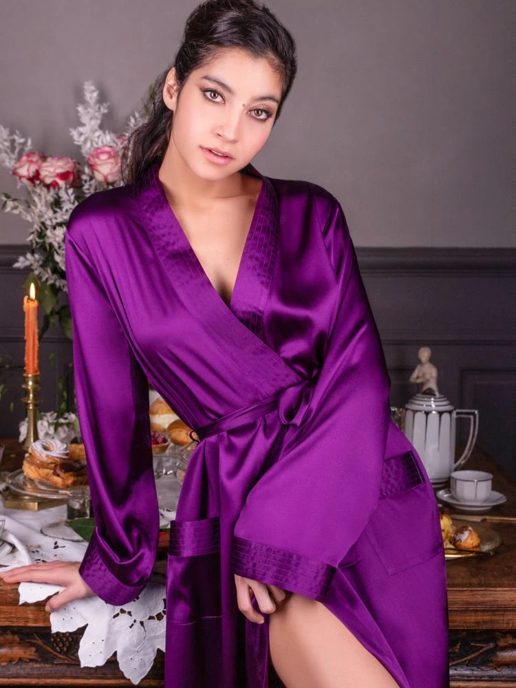 Langer Luxus Seiden Morgenmantel Nelia von Marjolaine