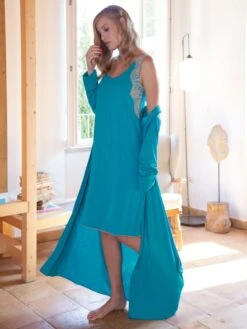 Das Nachthemd mit verstellbaren Trägern von Chiara Fiorini besteht aus Seide in einer elastisch gewebten Qualität (96% Seide, 4% Elasthan). Es ist Made in Italy und in den Größen 34 bis 48 erhältlich. Ausverkaufte Größen sind hier nicht nachbestellbar. Dieses Nachthemd ist ca. 85 cm lang. Der untere Saum ist mit einem breiten Spitzen-Abschluss gestaltet.