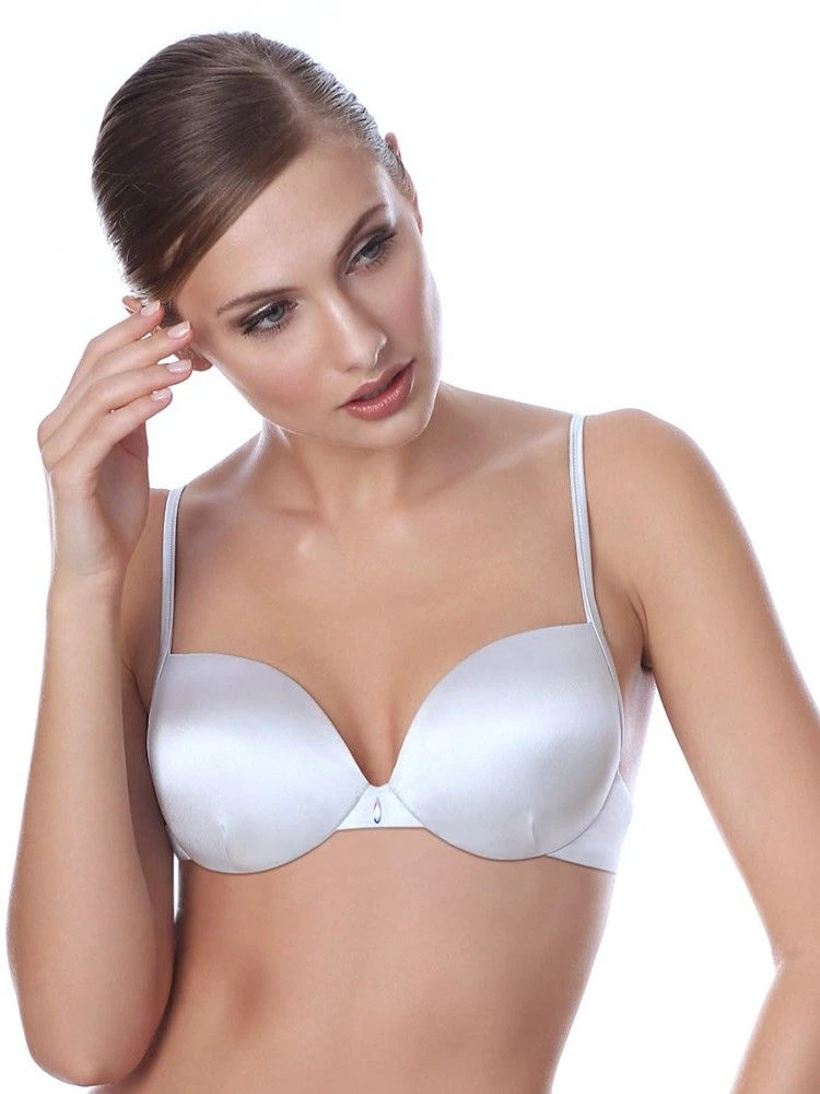 Der Seide Push-Up BH von Prelude Milano ist Seidenwäsche Made in Europe. Das edle Teil besteht aus glänzendem Seiden-Stretchsatin. Der Satinteil dieses BHs besteht dabei aus elastischer Seide mit Elasthan. Die Cups sind innen ebenfalls mit Satin abgefüttert – so trägt man die Seide direkt auf der Haut. Die ausgeformten Cups mit Bügel sind leicht geschäumt und haben Einschubtaschen, in welchen auf jeder Seite jeweils 2 Stück entnehmbare Push-Up Einlagen sind.