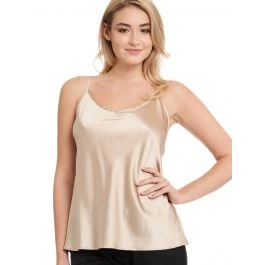 Das in leichter A-Linie geschnittene Seidentop mit verstellbaren Spaghetti- Trägern ist besonders kombinationsfreudig: Es ist als Oberbekleidung oder als Unterwäsche zu verwenden und mit der separat erhältlichen Pyjamahose oder Shorts kann man es in einen seidigen Pyjama oder Hausanzug verwandeln. Das Spaghettiträger-Top ist etwa 65 cm lang und in den folgenden Farben erhältlich: