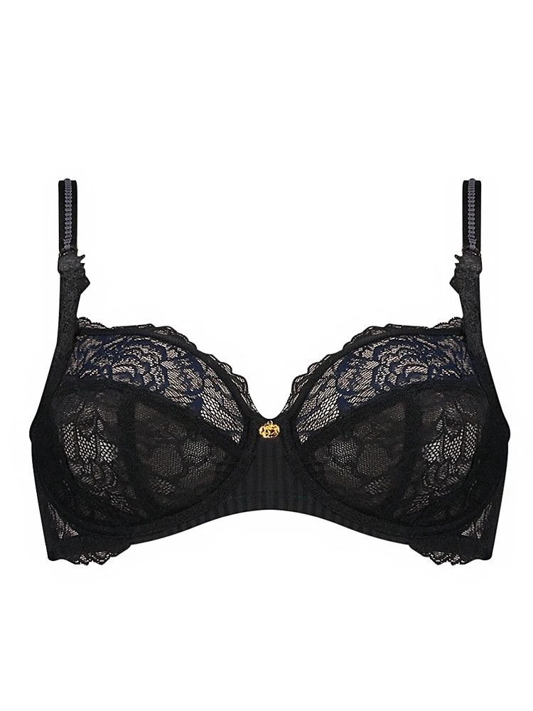 Dieser fein gearbeitete Bügel-BH hat ungefütterte, leicht transparente Cups aus Spitze mit Tülleinsätzen und Bügel. Die 4-geteilten Cups bieten einen verbesserten Halt und verleihen der Brust eine ebenmäßig runde und natürliche Form. Die Träger sind elastisch und in der Länge verstellbar. Der doppelte Häkchen Verschluss ist dreifach verstellbar und im Ausschnitt mittig ist ein kleines Schmuckelement angebracht.