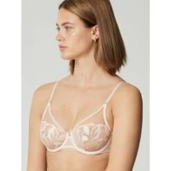 Der Bügel BH Sin ist eine luxuriöse Lingerie der französischen Edel-Dessous Marke Maison Lejaby. Der BH hat Cups in leichter Triangel Form, die bei dieser Marke als Vollschale bezeichnet werden. Die Cups mit Bügel sind aus bestickter Tüll-Spitze mit floralen Motiven gearbeitet. Die Cups sind ungefüttert und transparent.