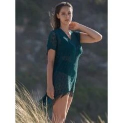Diese Strand Tunika der französischen Luxus Beachwear Marke Pain de Sucre ist in weiß (blanc), schwarz, rot, fuchsia oder petrol-grün zu haben. Das Material ist eine elastische Spitze und nicht gefüttert – daher teiltransparent. Diese Tunika kann als Beachwear, kurzes Kleid oder längere Bluse getragen werden.