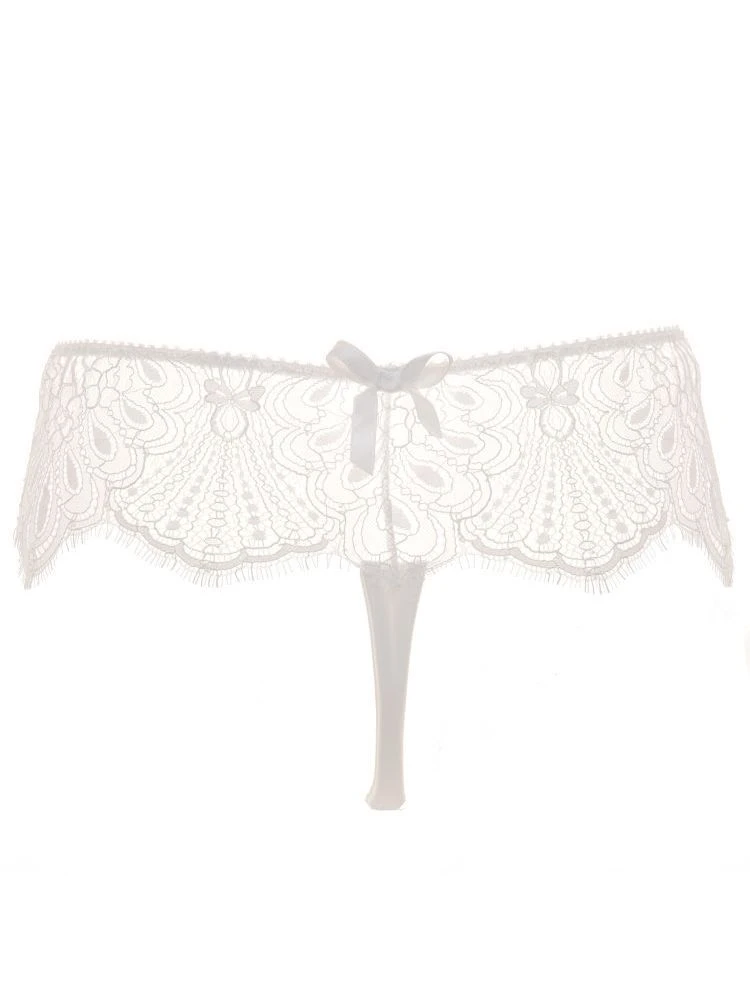 Der String von Prelude Milano ist Designer Unterwäsche Made in Europe. Das edle Teil besteht aus glänzendem Stretchsatin und floraler Eye-Lash-Spitze. Im oberen Teil ist die feine Spitze umlaufend eingesetzt – so ist der String seitlich nahtlos. Außerdem hat der String auf der Rückseite ein dekoratives Satinschleifchen und einen Innenzwickel aus Baumwolljersey. Ergänzende Teile sind in unserem Shop separat erhältlich.