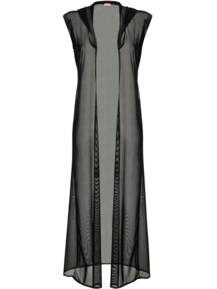 Der leichttransparente Kaftan hat kurze Ärmel und eine Kapuze im oversized Stil. Der Saum an Kapuze und Ärmeln ist elastisch. Der Kaftan ist 140cm lang und reicht bis zu den Knöcheln. Dieser luftige Überwurf eignet sich perfekt als Strandbekleidung, als Beach Club Wear oder als modisches Accessoire zur sommerlich, verführerischen Abendgaderobe. Dieser topmodische, sommerliche Mantel ist vorne offen gestaltet und kann wie ein Cardigan mit Unterbekleidung getragen werden.