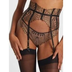 Der verführerische Strapsgürtel SENSORY ILLUSION mit goldener Rankenstickerei von Aubade ist luxuriöse Reizwässche aus Frankreich. Die Sensory Illusion Kollektion von Aubade entstand in der Zusammenarbeit mit der niederländischen Modedesignerin Iris Van Herpen.
