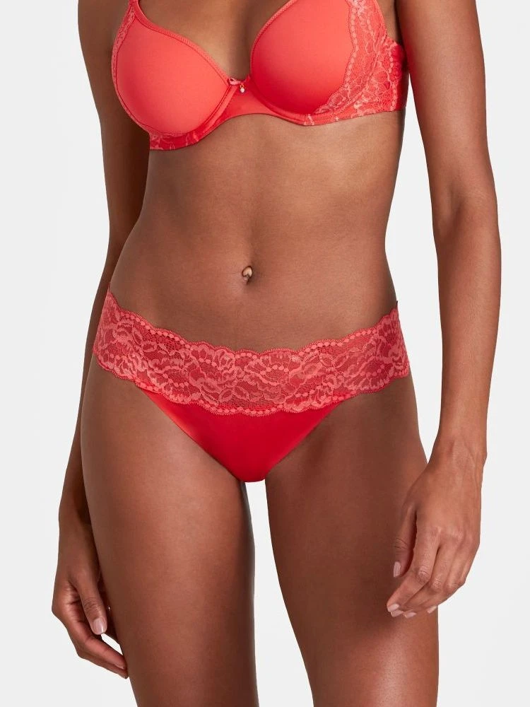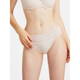 Der feine String hat Laser Cut Kanten und ist seitlich nahtlos, für einen besonders flachen Look. Der Bund ist mit Spitze verziert und der String hat einen Innenzwickel aus Baumwolljersey.