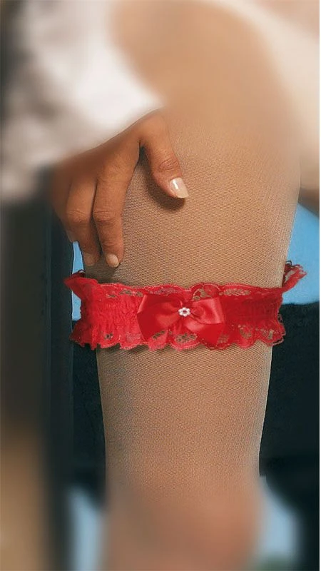 Das Strumpfband ist elastisch und als Einheitsgröße ausgelegt. Es ist in den Farben weiß, champagner, rot oder marine-blau erhältlich.